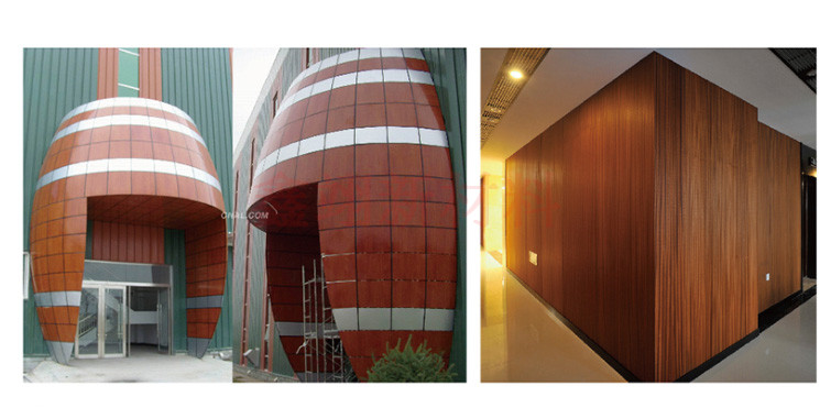 室外裝修。在室外,建筑幕墻、人行天橋、火車站幕墻、廣告標(biāo)志牌等公共場(chǎng)所,我們的木紋鋁單板會(huì)經(jīng)常被用到。因?yàn)榫哂泻軓?qiáng)的耐腐蝕性,能夠抵御強(qiáng)紫外線的照射,也能夠抵御酸雨這些強(qiáng)腐蝕性的物質(zhì)。